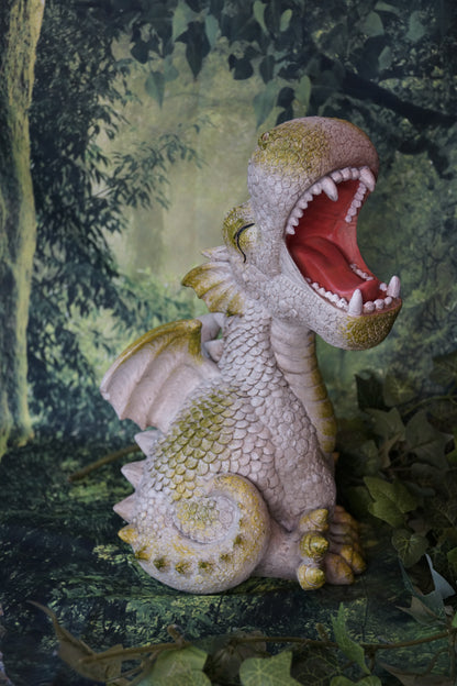 Große Drachenfigur für den Außenbereich geeignet. Erinnert an Steinoptik die in Schuppen übergeht und wieder zurück. Unser Drachen hier ist sehr müde und gähnt. Passt somit auch gut zu den anderen Gartendrachen hier im Shop. Auf der Terrasse, dem Balkon, am Teich... ein MUST HAVE für den Drachenliebhaber.