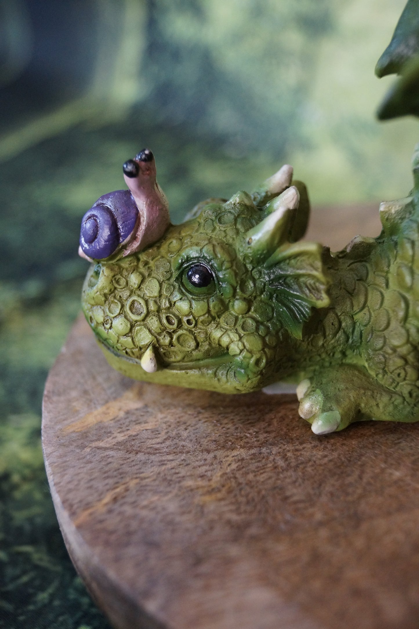 "Wollen wir spielen?" Kleiner Drache mit Schnecke auf der Nase